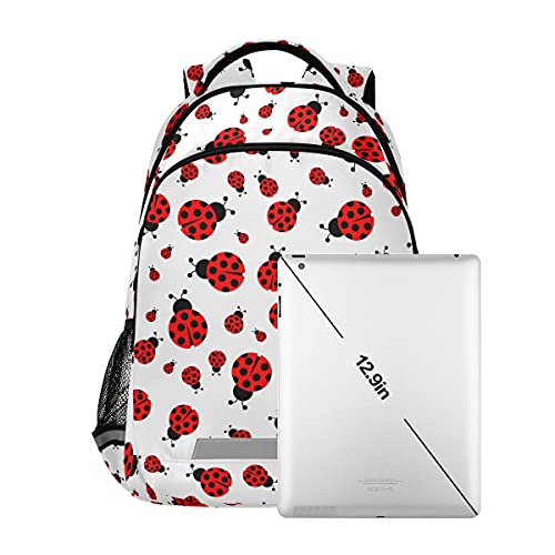 MNSRUU School Backpack with Chest Strap, Cute Red Ladybug Laptop Backpack, Travel Hiking Backpack for Boys Girls, Rucksack, Knapsack One Size