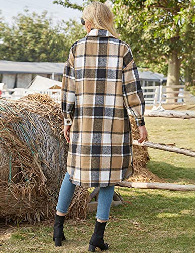 trending ! PUWEI Women's Casual Lapel Button Down Long Plaid Shirt Coat Tartan Shacket Jacket