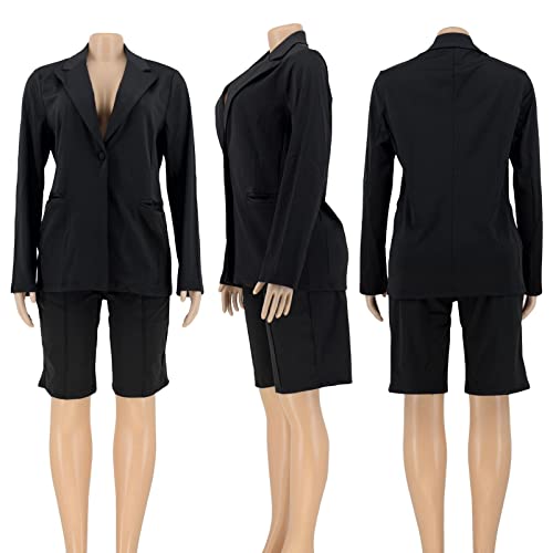 • Features: 2 piece blazer short set,Solid color,Shirt collar,Open front blazer with button,High waist biker pants,Casual summer 2 piece suit set,Bussiness 2 piece blazer shorts