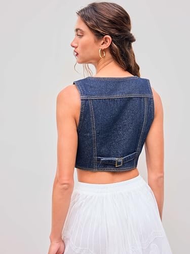 CIDER Women's Denim Vest V Neck Sleeveless Crop Vest Button Down Casual Tops Trendy