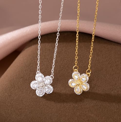 trending ! Reffeer Solid 925 Sterling Silver Cubic Zirconia Flower Choker Necklace for Women Teen Girls Sparkling Flower Pendant Necklace