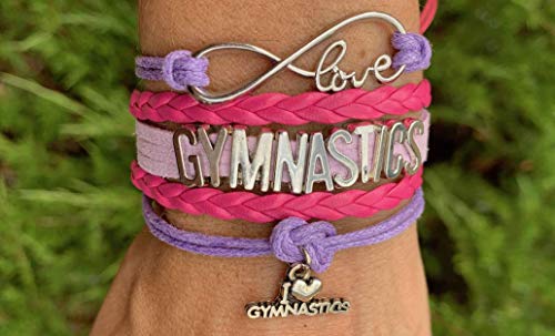 Item display length: 6 inchesMaterial: Pink and purpleMetal type: AlloyClasp type: Lobster ClawChain type: Rope ChainGymnastics Jewelry- Gymnastics Charm Bracelet - I Love GymnasticsGymnastics Bracelet -Infinity Gymnastics Bracelet Pink & Purple Color/ rope Clasp with Silver Tone Gymnastics CharmsAdjustable -Easily Adjusts to Fit your Wrist 5 to 7 Adjustable LengthGymnastics Gift- Looking for a Gymnastics gift for a special Gymnast, Our Gymnastics infinity love bracelets make the Ideal Gift For Gymnast, Gymnastics Teams & Gymnastics Coaches for birthday, end of season, comeptitions or just because giftsDesigned & Sold By Sportybella- A USA family owned business. Our mission is to help athletes show team spirit with sports accessories From bracelets to hair ties to keychains and more, we believe Sportybella jewelry instills pride and connection with your activity of choice. We pride ourselves on the integrity of our products and firmly stand behind all that we sell. If you are not satisfied with your purchase, please contact us so we can make it right. faultless for everyday use. premium materials and excellent craftsmanship ensure long-lasting durability.