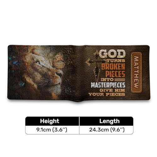 Personalized Leather Wallet for Men - Custom Folded Wallet Gift for Dad, Husband - Father’s Day, Birthday, Anniversary (God Turns Broken Pieces Into Masterpieces)