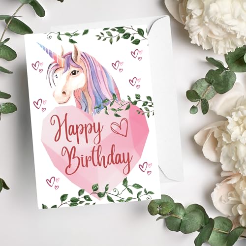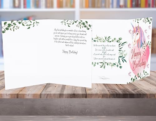 • GREETING CARD - Celebrate in magical style with our unicorn girls birthday card. With an adorable rainbow unicorn front and center, this card makes a delightful complement to a unicorn birthday gift or if the theme is a unicorn party. The birthday card measures 5 x 7 inches and is meticulously designed on quality cardstock. GREETING INSIDE READS: May this birthday be a reminder of how extraordinary you are and inspire you to always pursue your dreams and passions. Wishing you a year ahead filled with love, laughter, and endless possibilities. appreciate this special day to the fullest and embrace all the fantastic adventures that lie ahead. Happy Birthday!