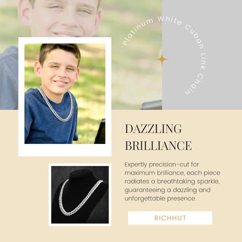 More information about Cuban Link Chain for Kids Teen - Luxury 18K Real Gold/Platinum White Gold/Rhodium Black/Rose Gold Plated - Iced Out Bling 14MM Width Necklace Bracelet - Fits Ages 8–16 - Giftbox Included