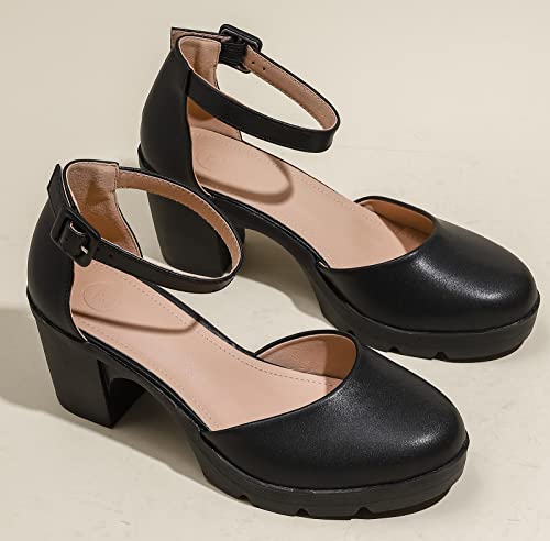 • 【Comfort Block Heel】: Elevate your style and add height to your look with these chic platform pumps featuring a chunky 2.5-inch block heel that provides balance and support for entire-day comfort. Friendly Note: The size table has been updated, please secure the normal size according to your foot length, thank you!