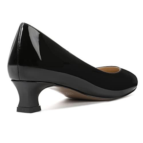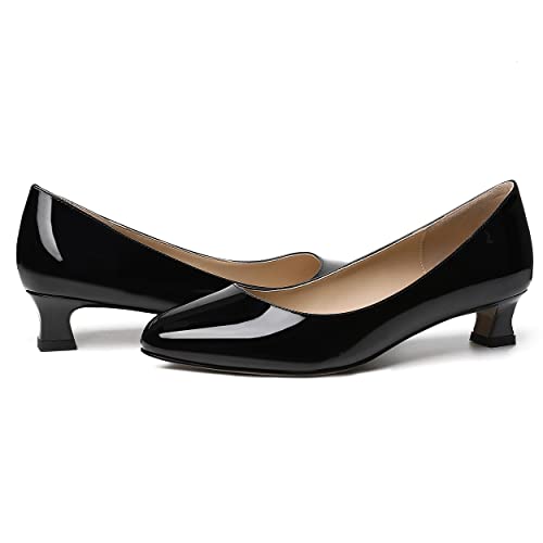 SKYSTERRY Women's Office Kitten Round Toe Slip On Patent Spool Low Heel Pumps Office Dress Shoes 1.5 Inch