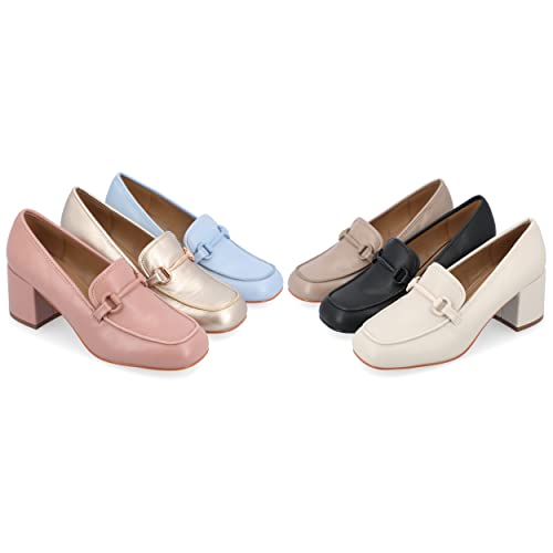 Journee Collection Womens Nysaa Block Heel Faux Leather Loafer Heels