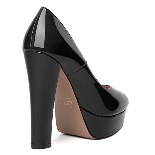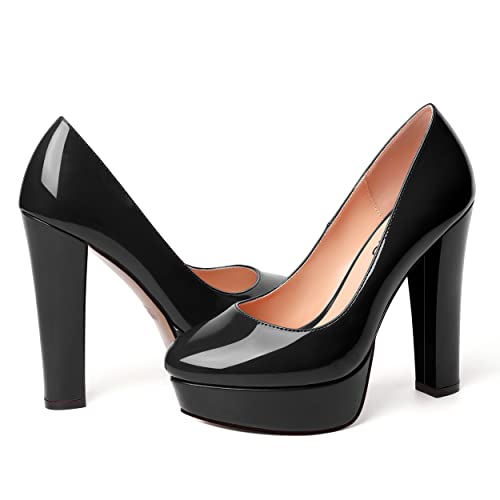 WAYDERNS Womens Round Toe Slip On Casual Platform Wedding Patent Block High Heel Pumps Shoes 5 Inch
