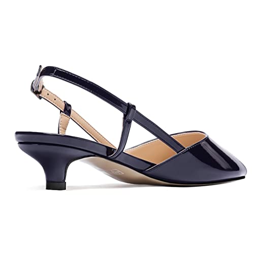WAYDERNS Women's Slingback Peep Toe Patent Solid Kitten Low Heel Pumps Cute Dress Shoes 1 Inch