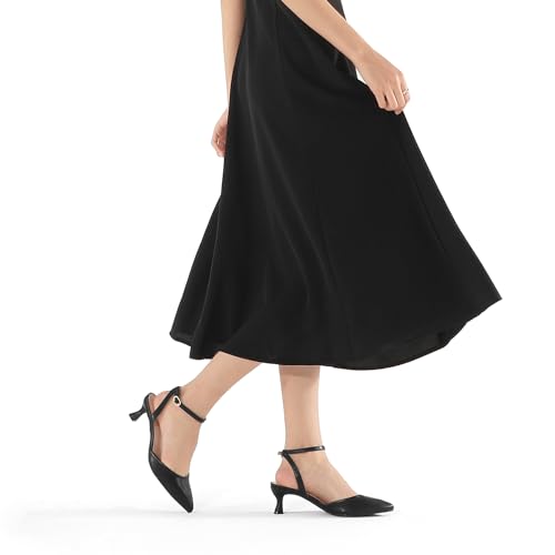 Sole material: Synthetic (Polyurethane)Outer material: Polyurethane (PU)Closure type: BuckleComfort Low Heel: The 2.37 in kitten heels are meticulously crafted to prioritize comfort, seamlessly merging optimal ease with a sophisticated styleAdjustable Ankle Strap: Featuring an adjustable ankle strap, these pumps allow you to achieve a secure and personalized fit, that's both sophisticated and easy to slip into and out ofExquisite Workmanship: These women's pumps showcase meticulous craftsmanship, featuring a pointed-toe design for added elegance. The absence of visible stitching on the shoe surface enhances its durability and aesthetic appealNon-Slip Outsole: The non-slip outsole provides reliable traction, offering stability and confidence with each stepVersatile Occasion: From office and school to business meetings, weddings, and special events like proms and parties, these pumps seamlessly transition between various settings. Combining style with comfort, they are the perfect choice for any occasion Perfect for everyday use. premium materials and excellent craftsmanship ensure long-lasting durability.