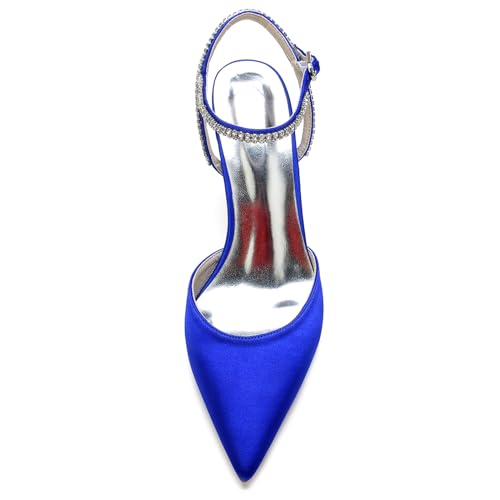 Women's Slingback Buckle Pumps Pointed Toe Satin Sexy Dress Wedding Party Ankle with Rhinestone Strap Bride Stiletto Heels
