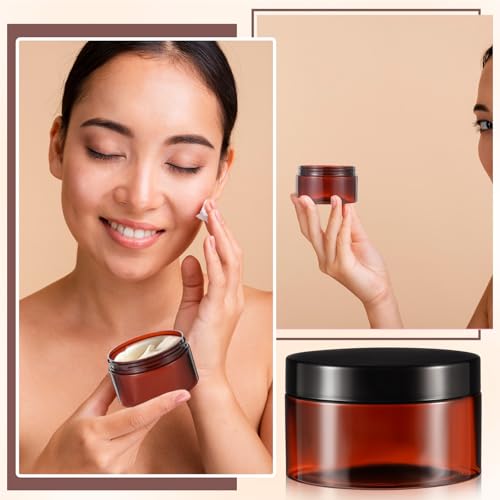 24pcs Amber Plastic Container Jars 8 oz Plastic Lotion Jar Empty Cosmetic Jar with Lids Leak Proof Sample Containers Refillable Storage Travel for Body Butter Creams Lotion Gel Powder Lip Balm