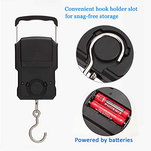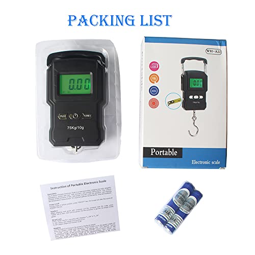 Brand: YAGSUWColor: BlackRecommended Uses For Product: Envelopes, Fish, Luggage, PackagesSpecial Feature: Auto Shut Off, Backlit DisplayDisplay Type: LCD【Widely Use】 The hanging fishing scale has a sturdy hook for an extremely accurate measurement of different types of suitcase bags . Ideal for weighing,travel luggage,shopping,post package,fishing and outdoor activities etc.【Built-In Measuring Tape】Once you know your item’s weight, conveniently find its size measurements as well. An included tape measure (39.37 inches) is stored inside the scale.【Accurate】High Precision Strain Gauge sensors system,capacity up to 165lb,precision accuracy of 0.1lb;Handheld travel baggage scale with accurate digital and easy to read LCD display,Convert units between lb/oz/kg/jin.【Easy to use】Due to sleek and ergonomic design it fits comfortably in your hand. Grasp the handle to weigh, try your best to keep the scale horizontally, the electronic digital scale will automatically lock the reading when data is stable.✔Portable luggage scale powered by 2 pcs AAA battery(in included) .Auto shutoff auto-lock display saves battery lift with tare lower battery overload indication.Please contact us if you have any problem. faultless for everyday use. superior materials and excellent craftsmanship ensure long-lasting durability.