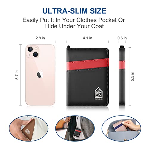 Brand: ELASNDColor: BlackMaterial: Faux LeatherStyle: ContemporaryPattern: Two-tone[Hands-Free Design]: Our passport holder comes equipped with a neck lanyard, providing you with the convenience of a hands-free experience during boarding and transit. Not only is our passport cover a practical tool, but it also adds a touch of sophistication to your outfit with its retro two-tone design that blends seamlessly into your look.[Ultra-Slim]: Our passport case is expertly crafted from premium PU leather, ensuring its durability and longevity. Its ultra-slim design allows for easy storage in your bags or large pockets, making it a lightweight yet secure solution while keeping your valuables hidden.[Clear Vaccine Card and Credit Card Holder]: Our passport wallet is thoughtfully outfitted with a clear TPU plastic sleeve that makes presenting your CDC vaccine card a breeze, with enough space to accommodate a 4 x 3 inch vaccine card. Additionally, there are four pockets to store your credit cards and cash, providing you with all the necessary space for your travel essentials.[RFID Blocking Material Lining]: The passport holder features an RFID blocking material lining, which protects your credit cards, debit, and other RFID-enabled contactless smart cards. The electromagnetically opaque shield lining ensures that signals from unauthorized electronic scanning devices are completely blocked, giving you peace of mind while traveling.[What You Get]: Our product includes a quality ultra-slim RFID blocking leather passport holder, a well-made neck lanyard, a mini metal ballpoint pen, and our worry-free 90-day satisfaction guarantee. Our friendly customer service team is always available to assist you, providing you with a smooth and hassle-free shopping experience. Perfect for everyday use. premium materials and excellent craftsmanship ensure long-lasting durability.