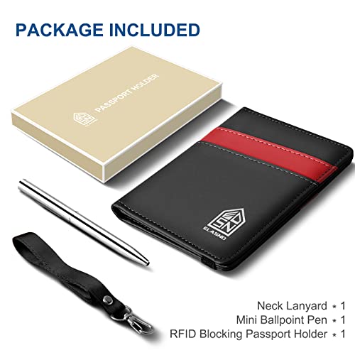Passport Holder for Travel with Neck Lanyard, Passport Case Passport Cover with Pen, RFID Blocking Passport Wallet for Men and Women, Black
