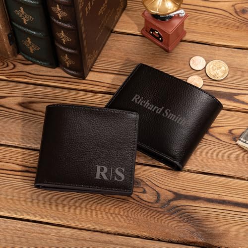 • Engraved Leather Wallets for Men Personalized Mens Wallet Bifold Wallets for Men Gift for Him Custom Wallets for Men Initials and Name Wallets for Men