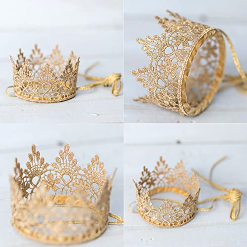 trending ! Mini Golden Lace Crown With Ribbon for Baby Child Birthday Party Queen Headband Dolls Crown