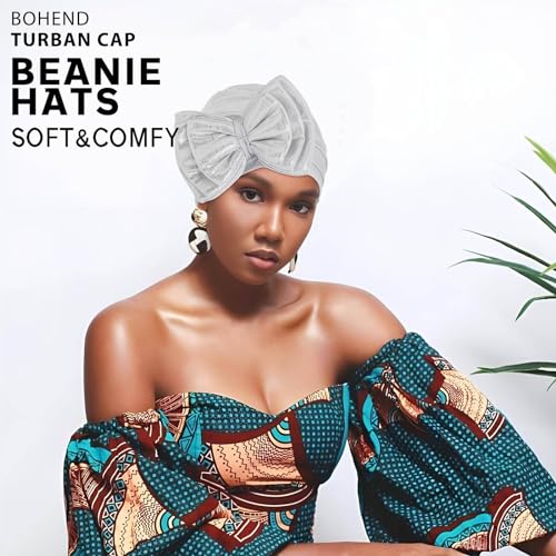 trending ! Bohend African Bow Turban Beanie Women Knotted Hat Stretch Headwrap Wide Head Covering