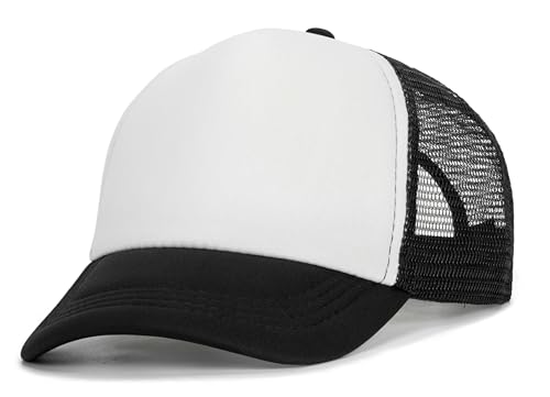Fabric type: 35%Polyester,65%CottonCare instructions: Hand Wash OnlyOrigin: ImportedClosure type: Pull-OnHigh quality material: Made with 35%Polyester and 65%Cotton material, breathable,cozy and plush for the perfect fit. This kids baseball cap is adorable lightweight which is perfect for your kids to outside on summmer spring and fallAdjustable size: Hat Circumference:48-52cm/ 18.89-20.47, fits for 2-6Years kids. Adjustable Snapback strap, Greatly convenient to adjust the size of the baseball cap to fit kids head and easy to wearPlain design: Open ponytail hole design makes this kids trucker hat suitable to any hairstyle, you can put your hair down or tie it into a ponytail or high bun, while helps to dissipate heat, then keeps you cool and vented in hot summerSun protection: The kids trucker hat keeps your kids face from harmful ultraviolet rays and prevent they sunburnt in summer. Each kids trucker hat has a mesh backing. This means more skin protection with less heat compared to full fabric hatsWidely Used: Suitable for beach, swimming, tourism, camping, walking, park, walking, climbing and any outdoor sport etc Perfect for everyday use. excellent materials and excellent craftsmanship ensure long-lasting durability.