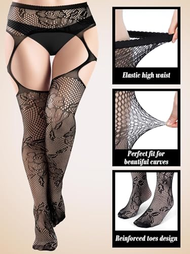 • Multipurpose: Elevate your wardrobe with these versatile and alluring suspender pantyhose, a seductive addition that radiates elegance and sex appeal. Whether for daily wear or special occasions fancy Halloween, Valentine's Day, Christmas, or a night of playful cosplay, these thigh high fishnet stockings are the epitome of sophistication, enhancing your every move with a touch of eroticism and style