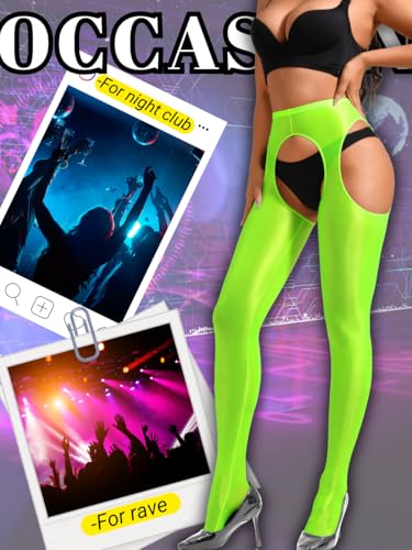 trending ! Sexy Shiny Tights, Sheer High-Waisted, Suspender Pantyhose For Women Rave Party Outfits Leggings Pants Exotic