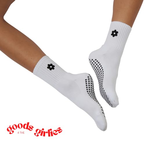 trending ! Women's Pilates Grip Socks with Flower Embroidery | Non-Slip Crew Socks for Women for Yoga, Barre, Pilates