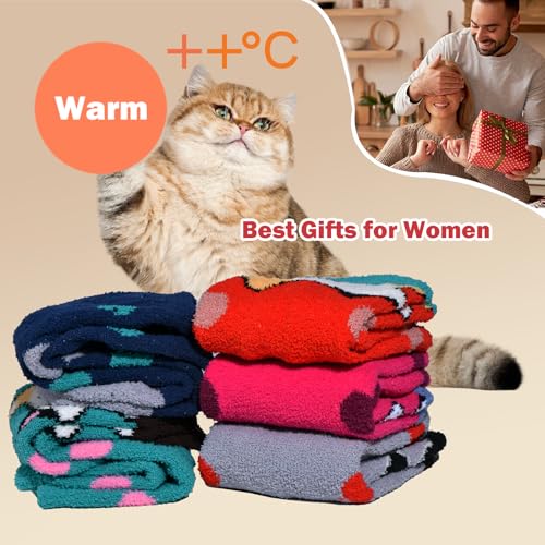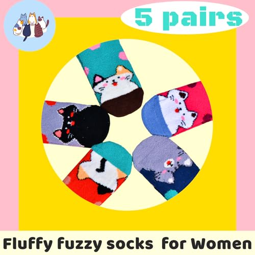 Fabric type: 95% Polyester, 5% SpandexCare instructions: Machine WashOrigin: ImportedPattern: Novelty【Size Design Features】: Women Fluffy fuzzy socks are elastic, one size fits most person (US Women's shoes size 5-9), with 4/5 pairs per pack. The novelty cute cat, dog, smiley face, leopard, pattern gives them a rare funny and fashionable look, making them a great choice for any outfit.super soft cozy warm fabric, giving you comfortable wear experience for everyday activities and even during sleep【Material 】: These fuzzy Cat socks for women are made from high-quality polyester and spandex, featuring super soft coral velvet materials that provide a relaxing and comfortable feel. It's very breathable and cozy for all-day foot wear, high elastic cuff design, soft touch and comfortable feel.In the cold winter,As a gift for yourself【Warm, Healthy and Fluffy Socks】: In the cold winter fluffy warm socks provide exceptional warmth. The fuzzy socks trap heat and create a barrier against the cold air, Women fuzzy socks will strengthen your blood circulation and they are beneficial to your health.It will keep your body warm and stabilize your rhythem so you can have a nice deep sleep【Multiple Occasions]】: The fuzzy fluffy socks are suitable for many occasions.Cute cartoon animals and many colorful socks to be chosen. You can wear them as sleeping socks, party socks, home socks, slipper socks, warm socks, novelty and fun socks in the spring, fall, winter, or in any cold weather or snowy areas!cat puppy foot print women socks bring you a good mood【Gift-ready】: Animal Gifts for Women Dog and Cat Lover. women cute cat dog fuzzy socks are the must-have to keep warm in winter. This soft fluffy slipper socks make the perfect present for women or teen girls They can be the great presents for Christmas, Halloween, Mother's day, Thanksging day, Birthday, Valentine’s Day, New Year.Your daughter, granddaughter, wife, girlfriend, bridesmaids, mother, or grandmother will be sure to love them within Perfect for everyday use. excellent materials and excellent craftsmanship ensure long-lasting durability.