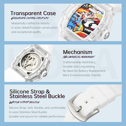 • Artistic Mechanical Design: Featuring a rare collaboration with artist KOTA, these SKMEI mechanical watches boast a vibrant and artistic design, impeccable for those who appreciate both fashion and art.