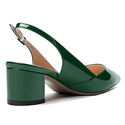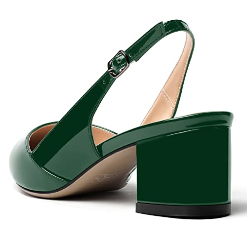 MERRORI Women's Solid Block Pointed Toe Slingback Buckle Patent Chunky Low Heel Pumps Shoes 2 Inch