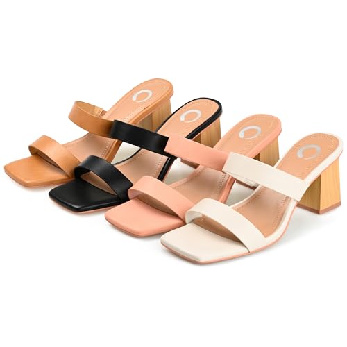 • Heel Height:2 1/2-inch Heel Type: Block Heel Platform Height:Flat-inch Shoe Width: Medium Closure Type: Slip-on Strap Type: Multi -Strap Toe Style: Open Lining: Faux Leather Upper Material: Vegan Leather Outersole Material: Man-made Footbed: 4 MM Tru Comfort Foam complete measurements are approximate and were taken using a size 6. Please note measurements may vary slightly by size.