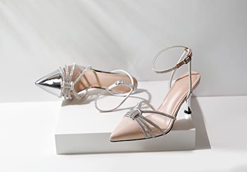 • 👠Stiletto High Heels: The stiletto high heels pumps feature sparkly rhinestone bows and crystal ankle straps,sturdy and gentle crystal ankle buckle straps stiletto heel will provide you a comfortable and gentle fit, offering every step stable and elegant.