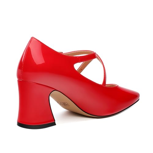 More information about Chunky Block Heels for Women Closed Square Toe Patent Pumps Cross Strap High Heels Evening Party Dress Shoes 2.5IN
