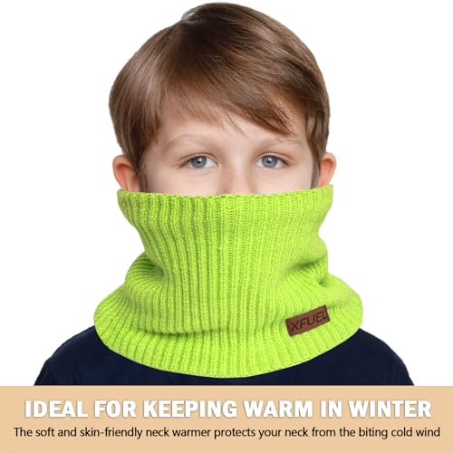 Kids Neck Warmer, 2 Pack, Knitted Winter Neck Gaiter, Fleece Lined Infinity Scarf for Boys Girls