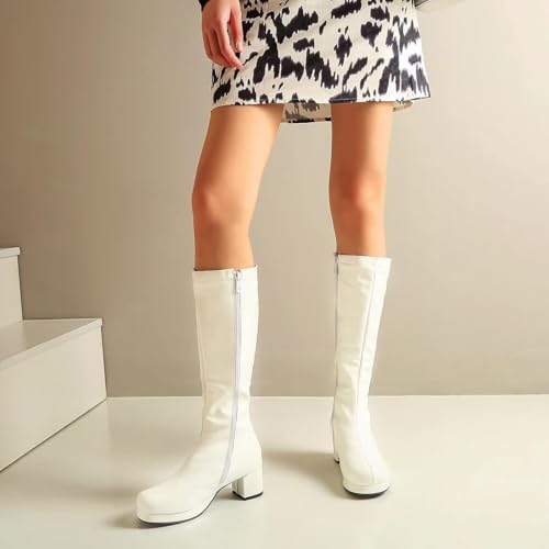 Agodor Women's 70's Gogo Boots Chunky Knee High Platform Boots with Zipper