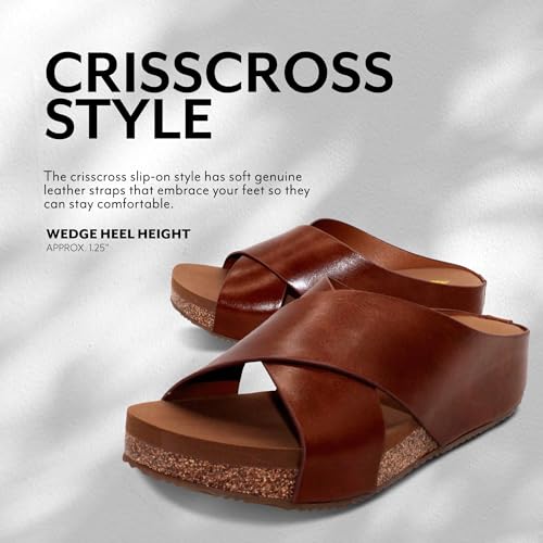 - Rustic genuine leather criss-cross slide upper