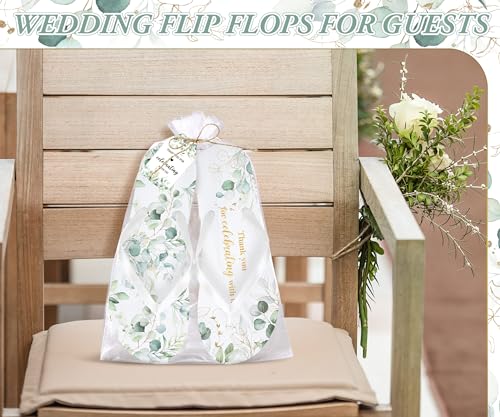 Brand: TwistoverColor: as pictures shownOccasion: WeddingIncluded Components: Card, TwineNumber of Items: 48Unit Count: 24.0 CountPattern: SolidSize: 74 Piece SetTotal Eaches: 24Item Form: BagPackage Includes: you will get 24 pairs of pairs flip flops, including 24 eucalyptus cards, 24 drawstring bags, 1 eucalyptus wooden sign and 1 twine, each pair of bulk flip flops for wedding guests has a card can be packed individually in a white drawstring bag; Generous quantities and also for party favor, and wedding reception giftMultiple Sizes: each flip flops include sizes measure 9.96 inches/ 25.3 cm 4 pairs, 10.2 inches/ 25.9 cm 8 pairs, 10.47 inches/ 26.6 cm 8 pairs, 10.75 inches/ 27.3 cm 4 pairs for a total of 24 pairs; The card size is 1.57 x 2.76 inches/ 4 x 7 cm, the wooden sign size is 8 x 10 inches/ 20.32 x 25.4 cm, the drawstring bag measuring approximately 13.78 x 9.45 inches/ 35 x 24 cm, length of twine is 314.96 inches/ 800cm; Meet the needs of different guests, give you a good feeling experienceLightweight and plush: designed to be lightweight, these flip flops for party provide adequate comfort around the clock, prevents the rubber from rubbing between the toes, which would otherwise cause discomfort and chafing, ideal for use on the boardwalk, sandy beaches, or by the poolside during a barbecueEasy to Use: these pairs flip flops bulk dry easily in the sun, and does not retain or soak any water, easy to rinse sand off and stow away when not in use; These bulk flip flops can be tucked away in a purse, beach bag, or book bagWide Application: these flip flops in bulk have 4 sizes for children, women and men, ideal for wedding ceremonies, beach parties, vacation resorts, spas, pool parties, baby showers, cruises, makes a great gift, donation item, party favor, and more, guests will love them Perfect for everyday use. superior materials and excellent craftsmanship ensure long-lasting durability.