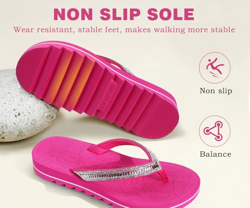 ONCAI Flip Flops for Women, Beach Thong Sandals Womens with Arch Support, Dressy Rhinestone pleasant Yoga Mat and Non Slip Rubber Soles for Summer US Size 5-11