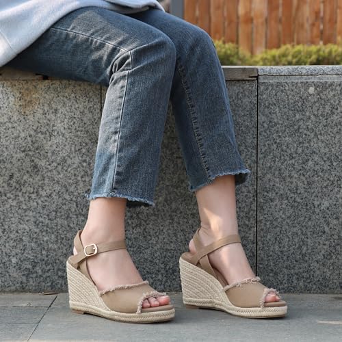 trending ! JOY IN fancy Platform Wedge Sandals for Women 4IN Espadrille Wedge Heels Ankle Strap Sandals