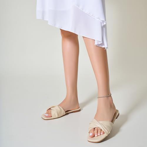 Outer material: Polyurethane (PU)Closure type: Slip OnStylish Design: Featuring a unique twisted cross-strap design, these sandals for women 2025 combine elegance and simplicity, perfect for any occasion.Comfortable Fit: Crafted with soft materials and a flat sole, these women's sandals ensure all-day comfort and support.Versatile Colors: Available in black, nude, and white sandals for women, offering timeless options to match any outfit.Perfect for Spring and Summer: Ideal as spring shoes for women 2025 or summer sandals for women 2025, making them a must-have for your seasonal wardrobe.Travel-Ready: Lightweight and durable, these vacation shoes for women are perfect for trips, casual outings, or dressy occasions. Perfect for everyday use. High quality materials and excellent craftsmanship ensure long-lasting durability.