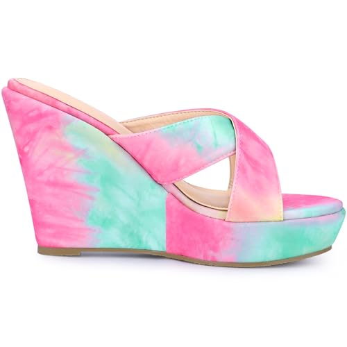 Why Choose Allegra K Women's Tie Dye Crisscross Strap Wedges Slip on Wedge Heel Platform Sandals?