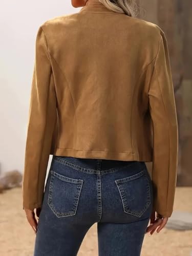 Womens Faux Suede Open Front Cropped Jacket Spring Button Long Sleeve Causal Business Blazers Jackets Outerwear