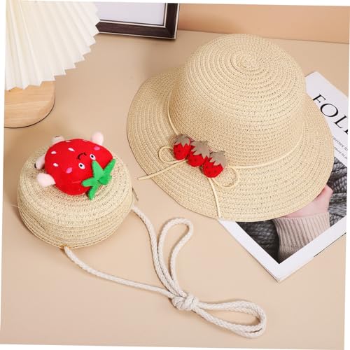 More information about Strawberry Shaped Purse Woven Straw Bag Crossbody Shoulder Bag Matching Hat Summer Accessory