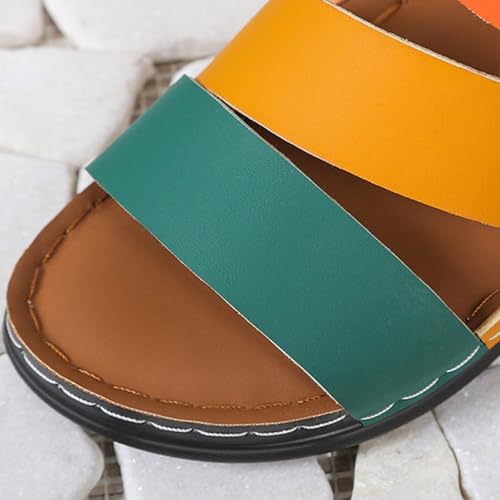 Women's Colorblock Slides Sandal Summer Low Wedge Slip on Walking Beach Slippers Comfort Sandals 2025