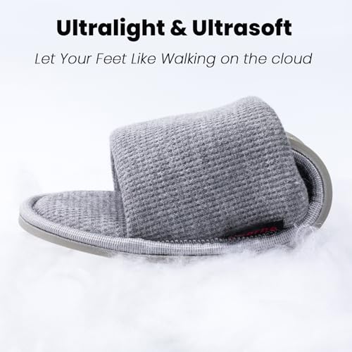 Women's Open Toe House Slippers – Breathable Waffle Fabric, Memory Foam Cushioning, Slip-On Summer Indoor Slippers, Non-Slip TPR Sole, practical Care