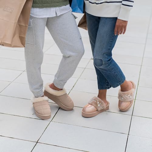 trending ! Dearfoams Women's Shearling Platform Slippers Bendigo Comfy Puff Plush Clog House Shoes