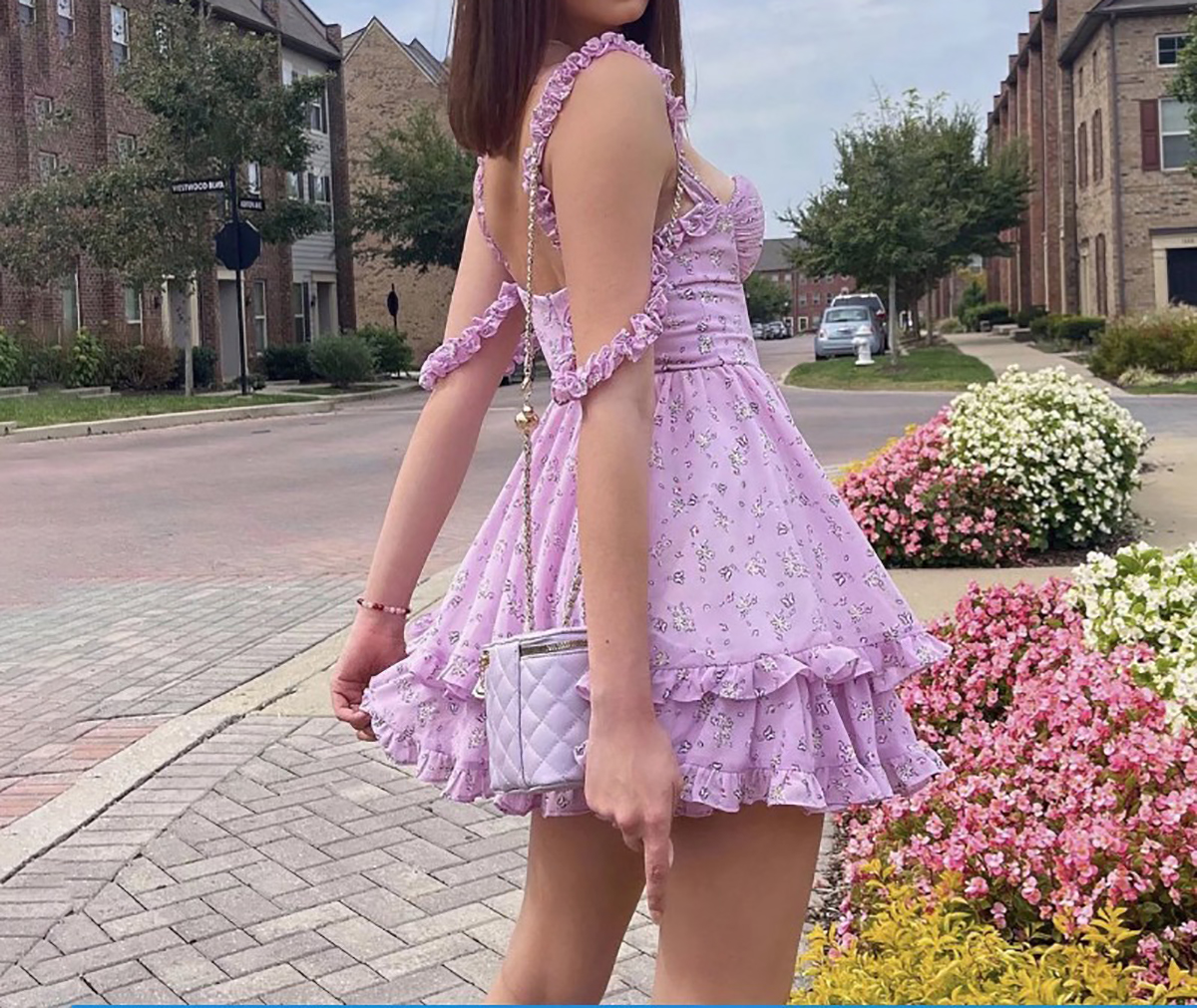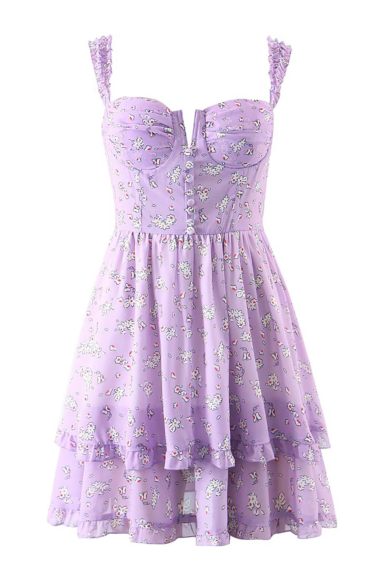 More information about R.Vivimos Womens Corset Dress Summer 2024 Boho Floral Print Adjustable Straps Sexy Backless Layered Ruffle Hem Mini Sundress