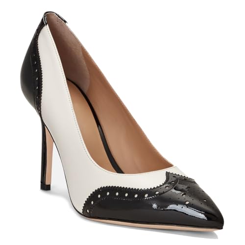 trending ! SHODENSE Women Pointed Toe Stiletto Heel Pumps Oxford Slip On High Heels Two Tone Perforated 4 inch Stiletto High Heels Pointy Closed Toe Dress Heels Wingtips Vintage Vintage 4-11 M US