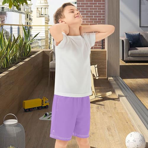 trending ! Lavender Boys Shorts Athletic Lounge Shorts Elastic Waist with Pockets Outdoor 7-15Y