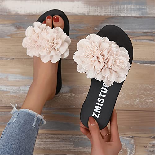 Ladies Fashion Summer Solid Color Suede Flower Decorative Open Toe Thick Soled Slipper Booties Women Indoor